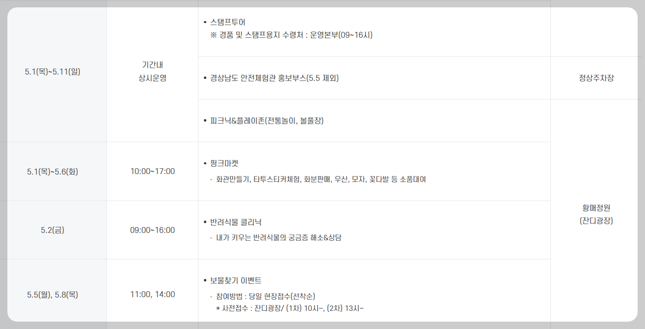 - 운영기간 : 4. 29 ~ 5. 16,월요일 휴무
